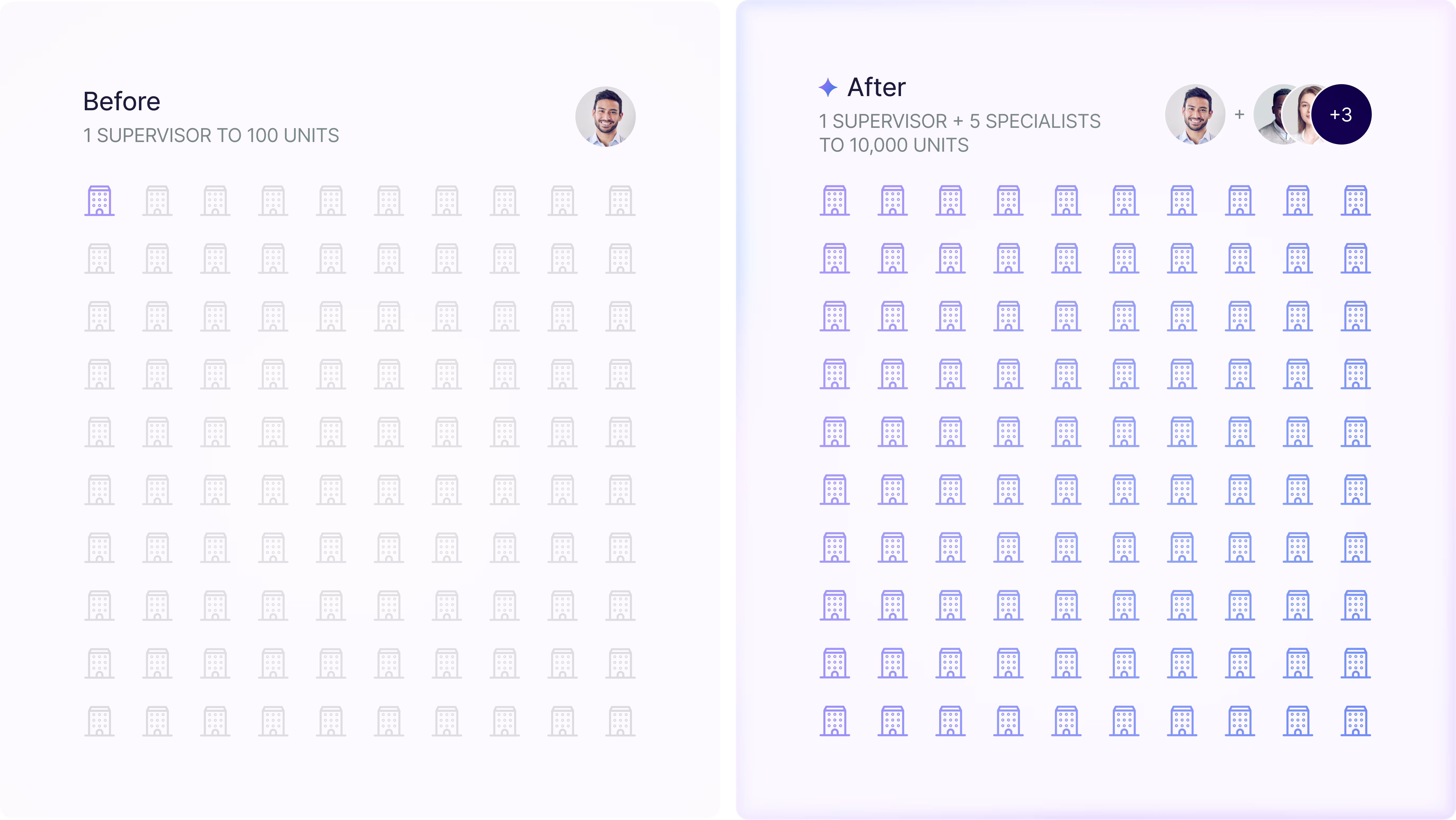 - Each specialist handles 1,200-2,500 units across 7-10 properties