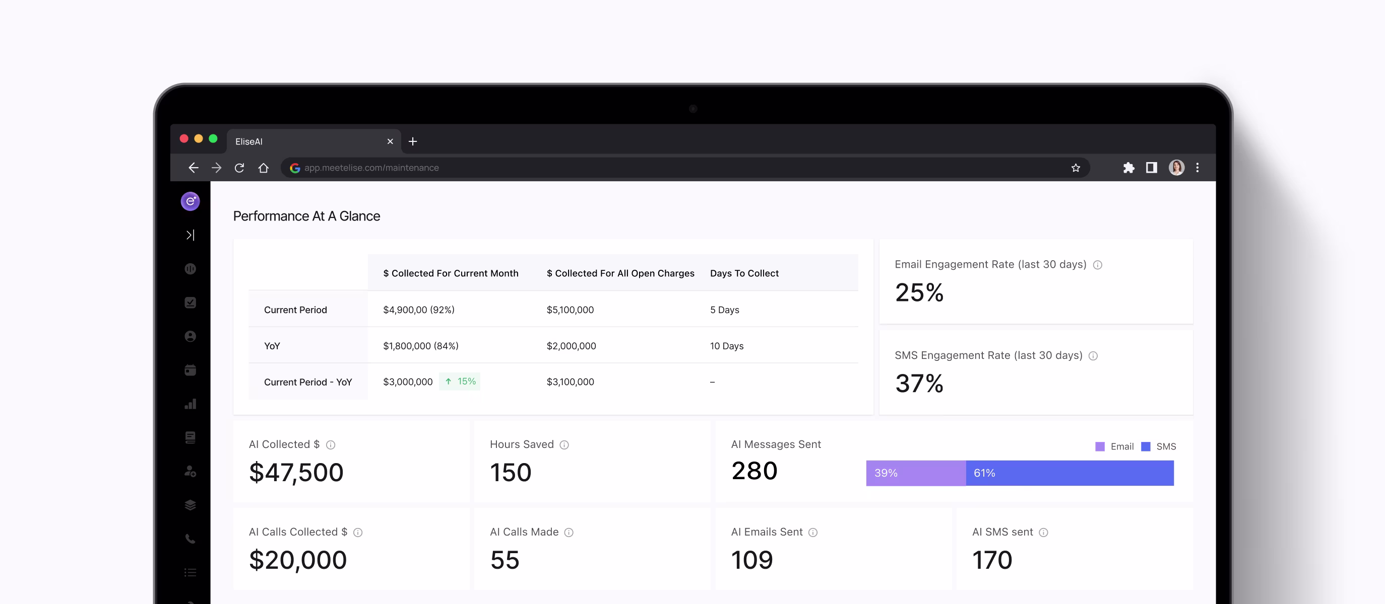 EliseCRM eliminates the reporting chaos by serving as a unified control center for property analytics. Instead of chasing down multiple contacts for fragmented data, the platform consolidates everything you need into a single, real-time dashboard.