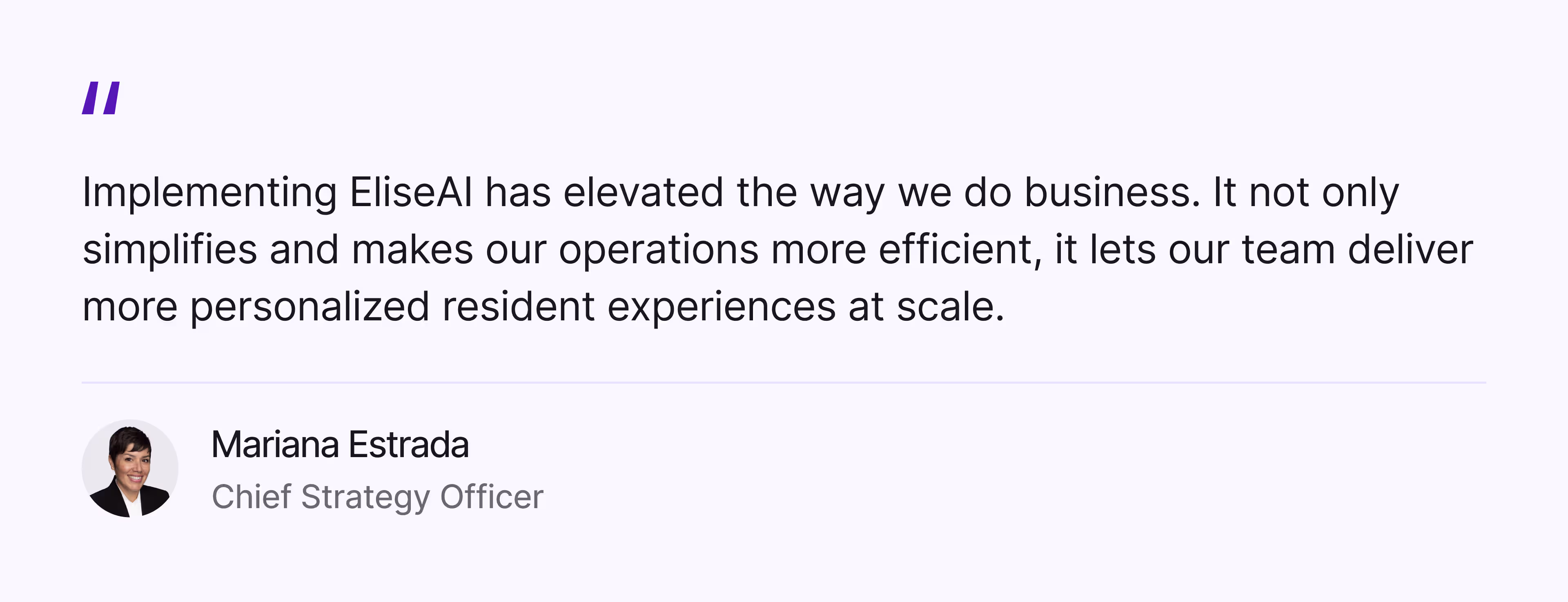 Book a demo to see how EliseAI automates communication, reduces workload, and delivers real results.