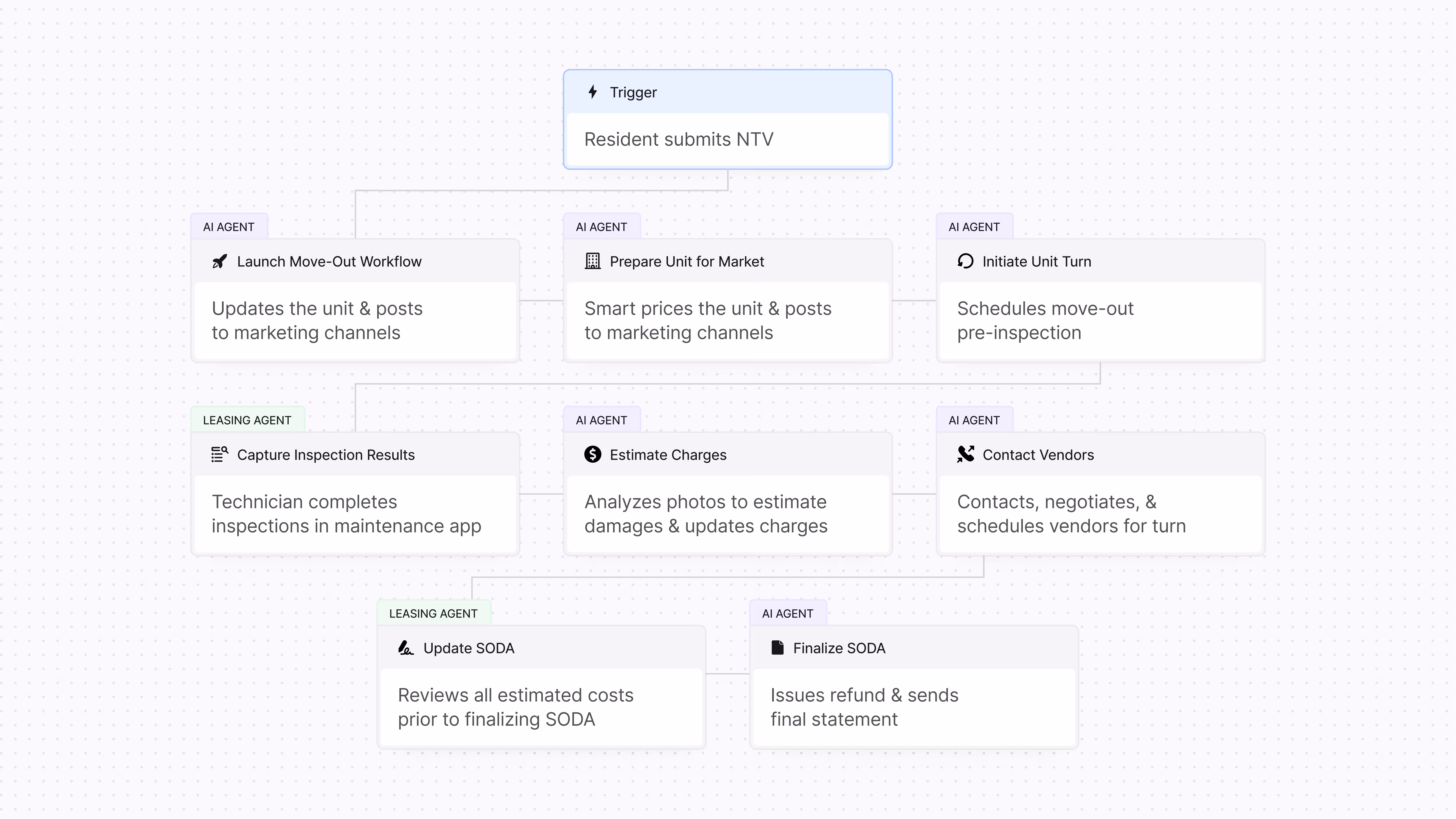 Modules are connected by AI, driving actions that complete workflows instead of just assigning tasks.