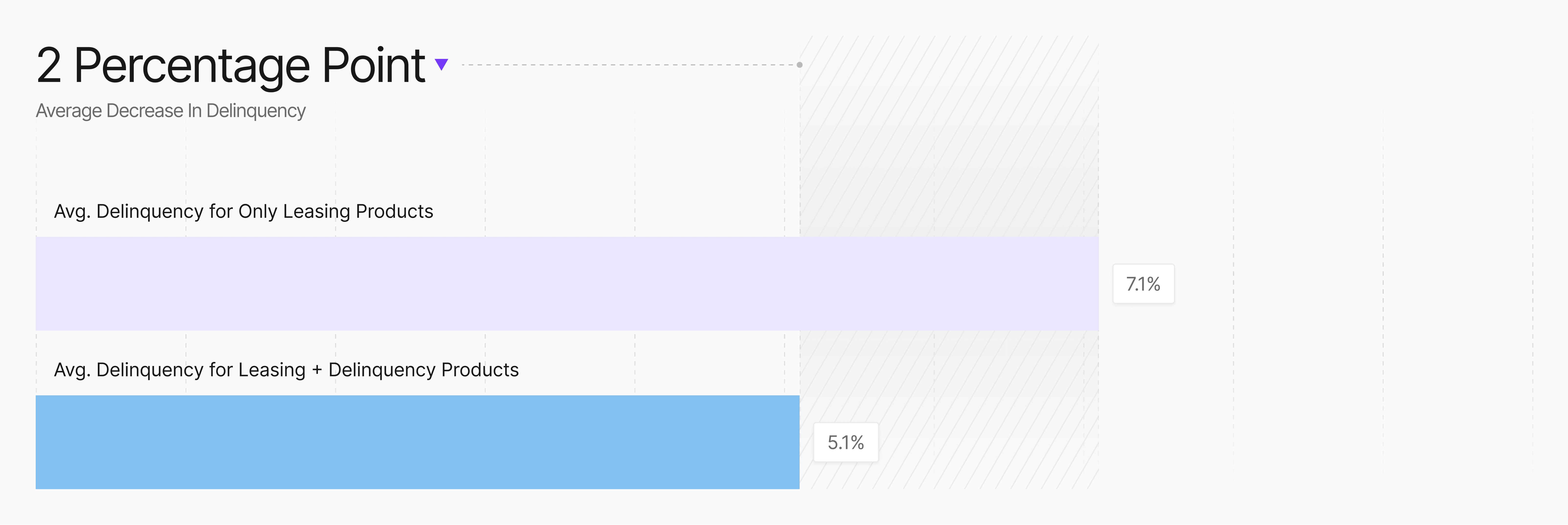 This results in a 2 percentage point decrease in average delinquency rates for customers who deploy both products, driven by the synergy between proactive screening and informed portfolio management.
