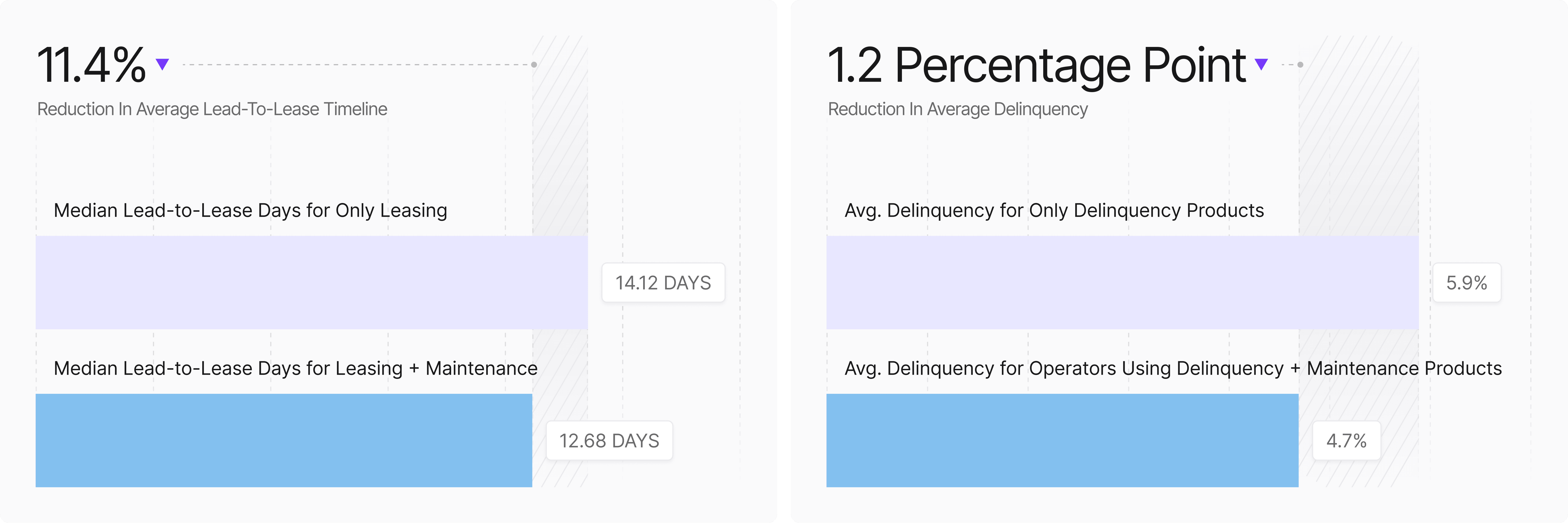The same synergistic effects apply for the MaintenanceAI product and the Delinquency tool. When an integrated AI can leverage maintenance and delinquency together, onsite teams have the support they need to resolve issues faster and recover more revenue.