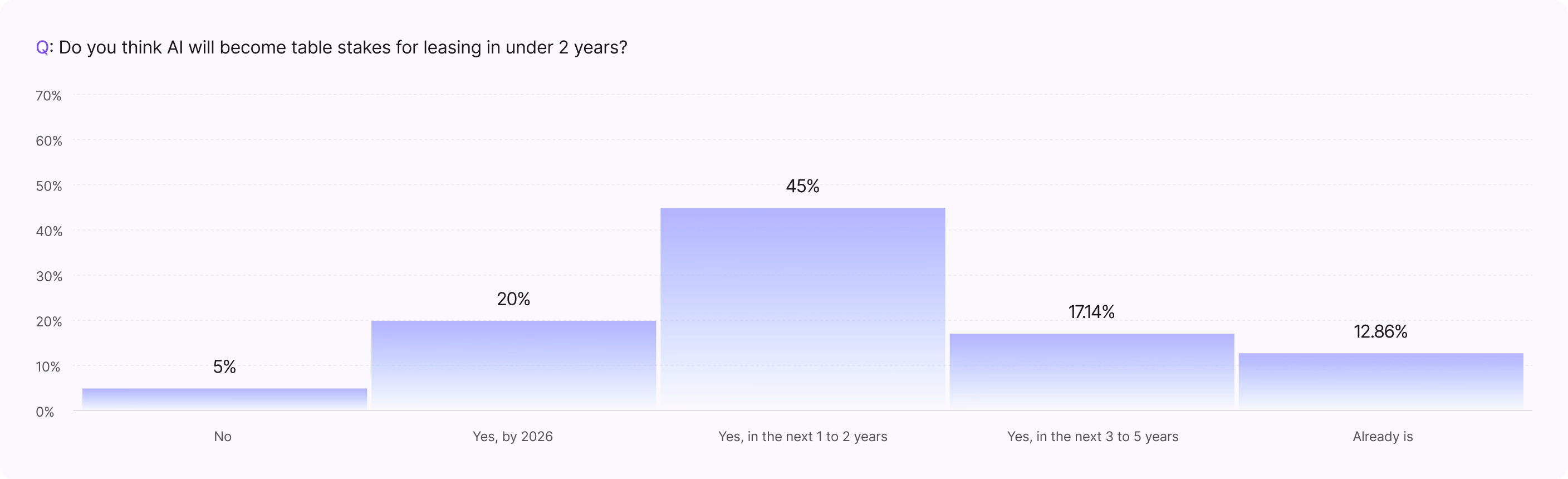 The budget for these AI tools continues to expand as well as they move from being seen as point solutions to fundamental architecture for multifamily operations. Over 70% of the operators we surveyed are already allocating significant budgets for AI as they switch their focus from basic leasing automation to full scale, agentic AI powered automation of routine work across the entire prospect-through-resident lifecycle. 71% are implementing either moderate or significant increases to their AI budget year-over-year as well.